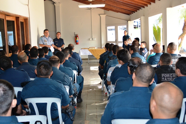 Campo Grande(MS) – O Comandante Geral da Polícia Militar de Mato Grosso do Sul, Coronel PM Waldir Ribeiro Acosta se reuniu na manhã de hoje(11/04) com os policiais militares da 5ª Companhia Independente de Polícia Militar, responsável pela área