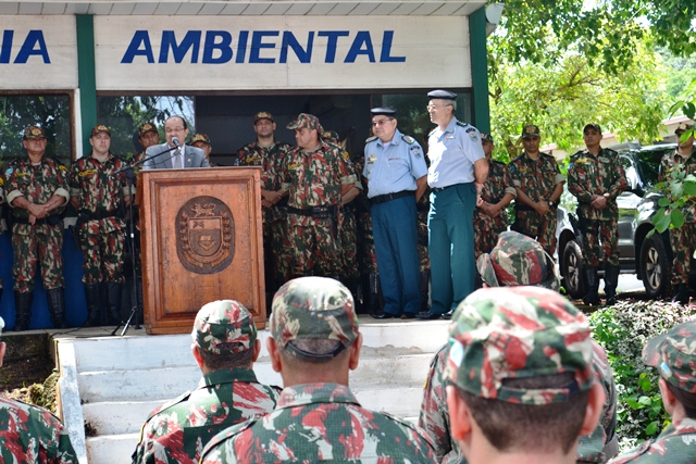 Campo Grande(MS)- O Secretário de Estado, Justiça e Segurança Pública, José Carlos Barbosa, o Comandante Geral da PMMS, Coronel Waldir Ribeiro Acosta, juntamente com o Comandante de Policiamento Especializado, tenente-coronel João Bosco de Macedo,