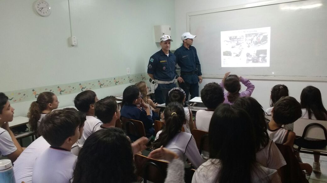 Campo Grande (MS) – O Centro de formação de condutores (CFC) realizou na manhã de hoje (12/04) o Projeto “Policial Mirim de Trânsito” na Escola Manoel de Barros no Jardim São Lourenço. O projeto esta sendo realizado pelos