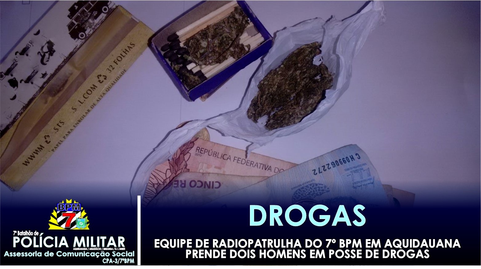 Aquidauana (MS) – Ontem (11.04), por volta das 13 horas, a Equipe de Radiopatrulha do 7º Batalhão de Polícia Militar em Aquidauana, fazia rondas pelo Bairro Alto, quando percebeu a presença de dois homens caminhando pela calçada, próximo a uma escola