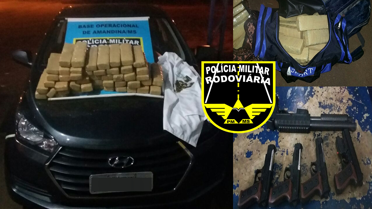 Campo Grande (MS) – A Polícia Militar Rodoviária, através da Base Operacional de Amandina, apreendeu quarenta quilos de maconha, munições e cinco simulacros de arma de fogo sendo transportados em um veículo na madrugada do dia 11 de abril. Um homem de