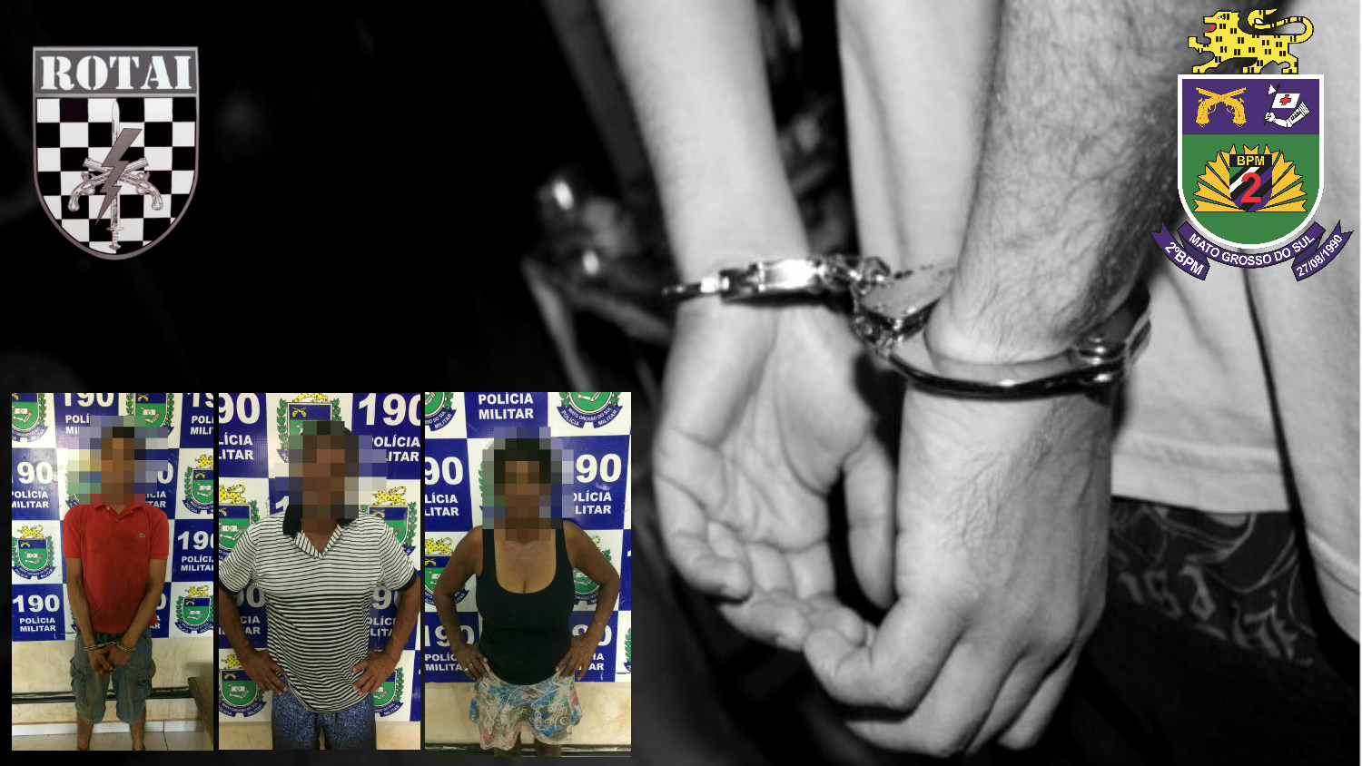 Campo Grande (MS) – 10 de abril de 2017. No ultimo sabado (08), por volta de 01h da madrugada, Policiais do Batalhão de Choque da PMMS tomaram conhecimento através do CIOPS (190), o qual um veículo SANDERO de cor preta com três indivíduos estariam
