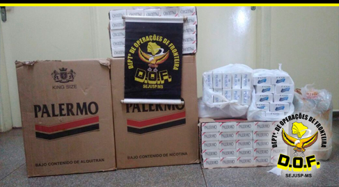 Bela Vista (MS) – Policiais do Departamento de Operações de Fronteira (DOF) apreenderam neste sábado (1), por volta das 12h, 178 pacotes de cigarros e 22 litros de gasolina durante bloqueio policial para fiscalização na rodovia BR 060. Os produtos