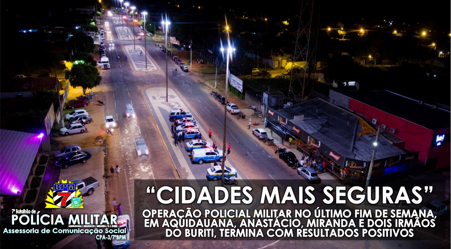 Aquidauana (MS) – O 7º Batalhão de Polícia Militar com Sede em Aquidauana, tendo como unidades subordinadas Anastácio, Miranda, Dois Irmãos do Buriti e seus respectivos distritos, realizou, na noite do último sábado (25), a Operação “Cidades Mais