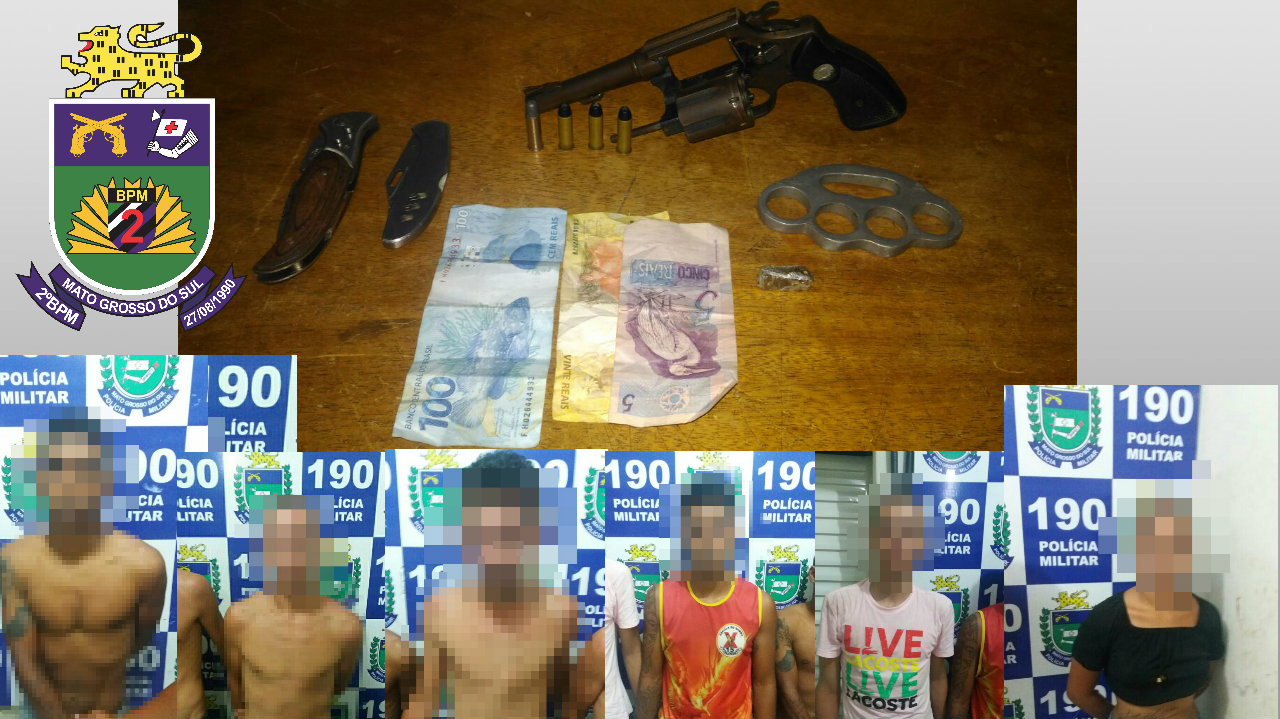 Três Lagoas (MS) – No dia (13/03) por volta das 17h30min Policiais Militares do 2° BPM prenderam 6 indivíduos entre 16 e 22 anos por associação criminosa, portar drogas para consumo pessoal e posse irregular de arma de fogo de uso permitido. Após uma