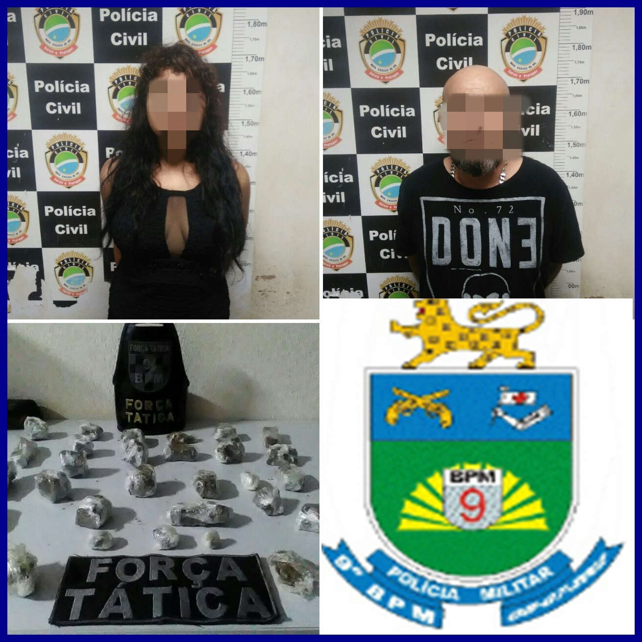 Campo Grande (MS)- Policiais Militares da Força Tática do 9ºBPM prenderam um homem e uma mulher, com idades respectivas de quarenta e um e vinte e três anos, no último sábado (11), no Jardim Colúmbia. Por volta das 3h, a guarnição de serviço