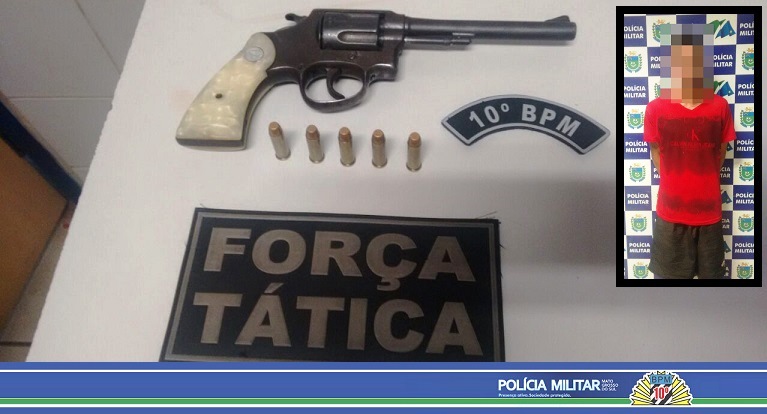 Campo Grande (MS) – Na noite desta segunda-feira (6), uma equipe da Força Tática do 10º Batalhão de Polícia Militar, sob a coordenação do oficial de dia, Aspirante Calvi, prendeu um homem de 26 anos que portava um revólver, da marca Taururs, de