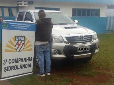 Campo Grande (MS)Nesta segunda -feira (06) por volta das 06h equipe PM 3ª Cia Sidrolândia recupera HILUX roubadaque seria levada para o Paraguay e prende homem por receptação. A equipe PM da 3ªCia Sidrolândia estava em deslocamento até campo grande