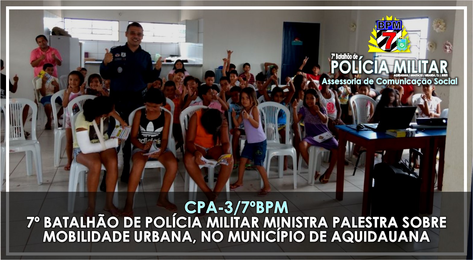 Aquidauana (MS) – Ontem (16.02), o 7º Batalhão de Polícia Militar, representado pelo Sargento Geosmar, participou das ações Sociais promovidas pela Assessoria e Consultoria de Projetos Sociais. O evento teve como alvo as crianças do Conjunto