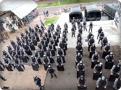 Campo Grande (MS) – 16 de fevereiro de 2017. Policiais do Batalhão de Choque da PMMS deslocaram na manhã de ontem (15) até o Presídio de Segurança Máxima para realizar “Operação Varredura” em apoio ao Exército Brasileiro. A Tropa de Choque