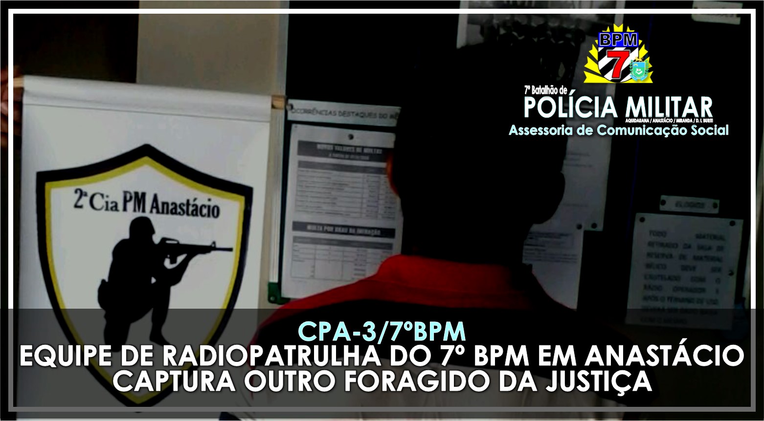 Aquidauana (MS) – Ontem (13.02), por volta das 14 horas, a Equipe de Radiopatrulha do 7º BPM em Anastácio, em atendimento a solicitação feita pelo Chefe do Cartório Criminal do Tribunal de Justiça local, efetuou a captura de um foragido da Justiça