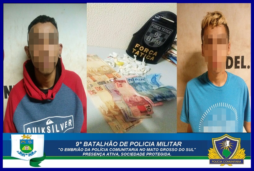 Campo Grande (MS)- Policiais militares da Força Tática do 9ºBPM apreenderam dois adolescente de dezessete anos, nesta terça (14), no Bairro Coronel Antonino. Por volta das 00h30, a equipe de serviço realizava rondas ostensivas preventivas, quando
