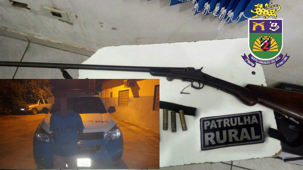 Três Lagoas (MS) – Ontem (13/02) por volta das 20h00min, Policiais Militares da Patrulha Rural cumpriram um mandado de prisão e encontraram em meio à vegetação na beira da via uma espingarda calibre 12. A guarnição estava abordando na MS 324 próximo