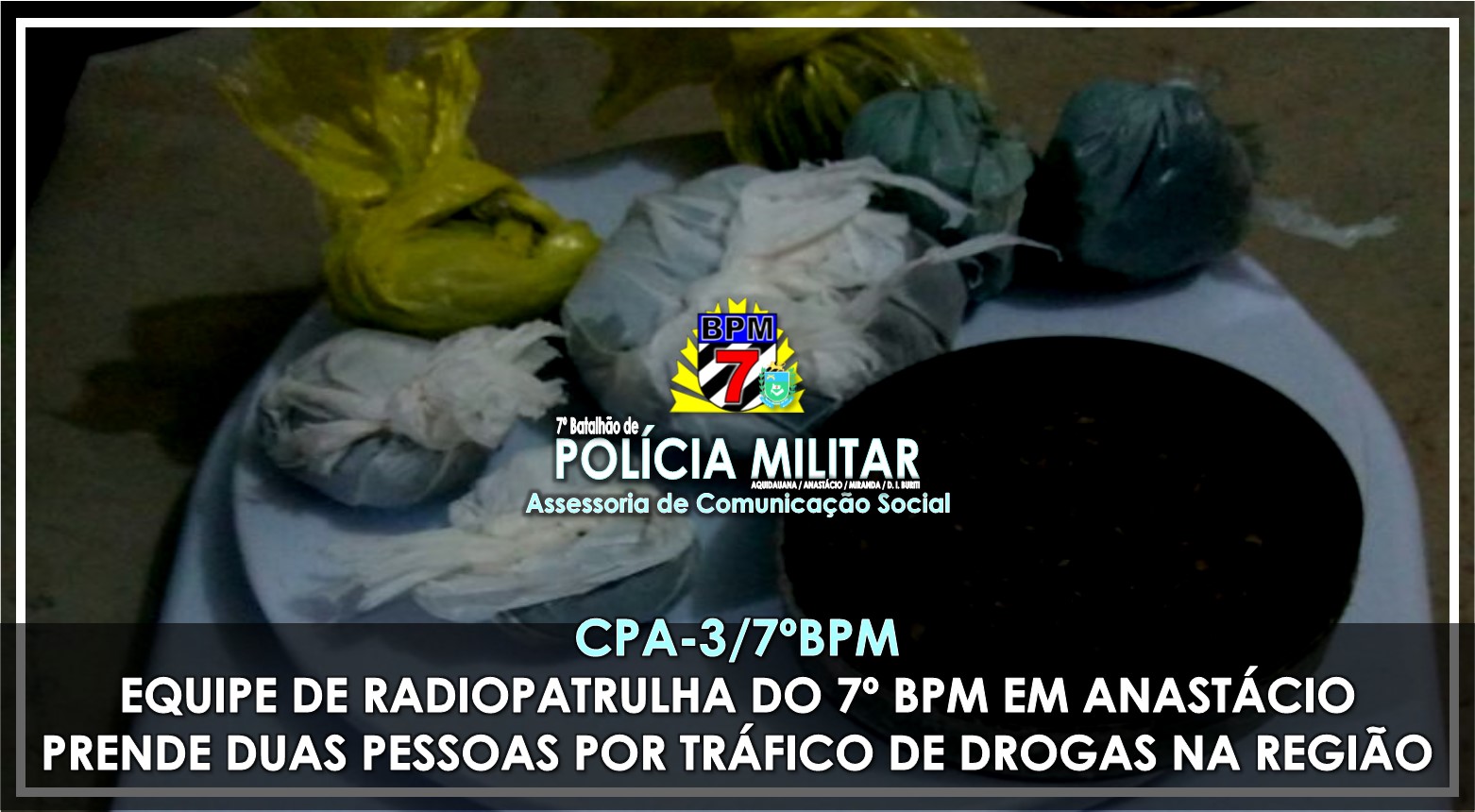 Aquidauana (MS) – Sexta (10.02), por volta das 18 horas, a Equipe de Radiopatrulha do 7º BPM em Anastácio, recebeu da ALI (Agência Local de Inteligência), também do 7º BPM, uma denúncia sobre algumas pessoas que estariam vendendo drogas na região da
