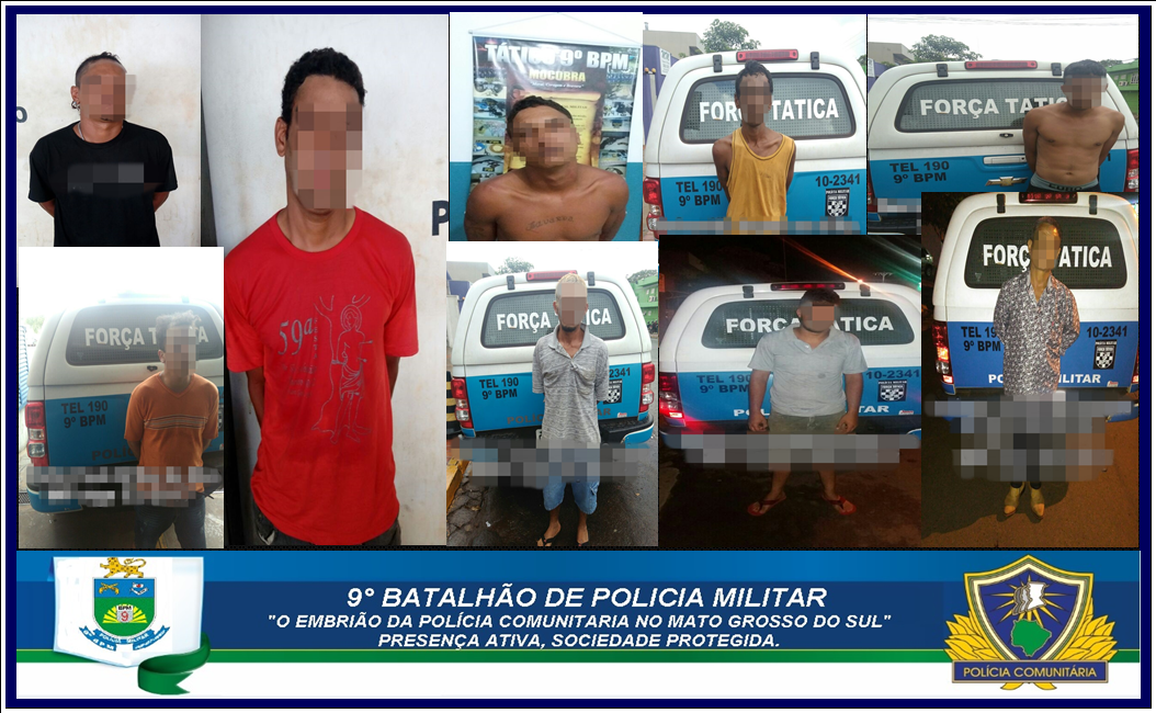 Campo Grande (MS)- Policiais Militares das Equipes da Força Tática do 9ºBPM prenderam nove homens com idades entre vinte e um e cinquenta e cinco anos, neste final de semana (10,11 e 12). Em rondas ostensivas preventivas pelos bairros Danúbio