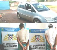 Campo Grande(MS) Nesta sexta- feira (11) a equipe da 3ª Cia Sidrolândia/1ºBPM recuperou um veículo furtado em de 30 minutos e prendeu os autores. Segundo as informações a vítima de 28 anos, estacionou o veículo em frente a sua residência na Rua