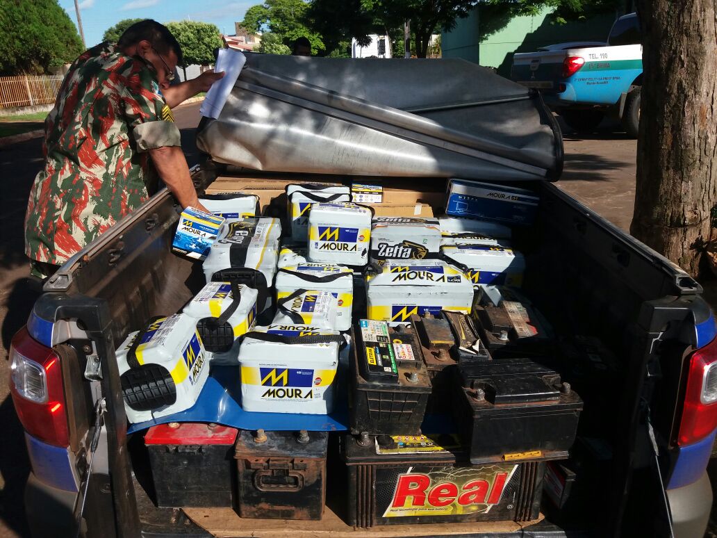 Campo Grande (MS) – Durante fiscalização ambiental no município de Eldorado, Policiais Militares Ambientais de Mundo Novo apreenderam hoje (3) no início da tarde, um veículo Fiat Strada transportando uma carga com 66 baterias de veículos novas e 160