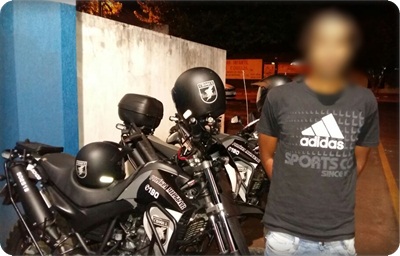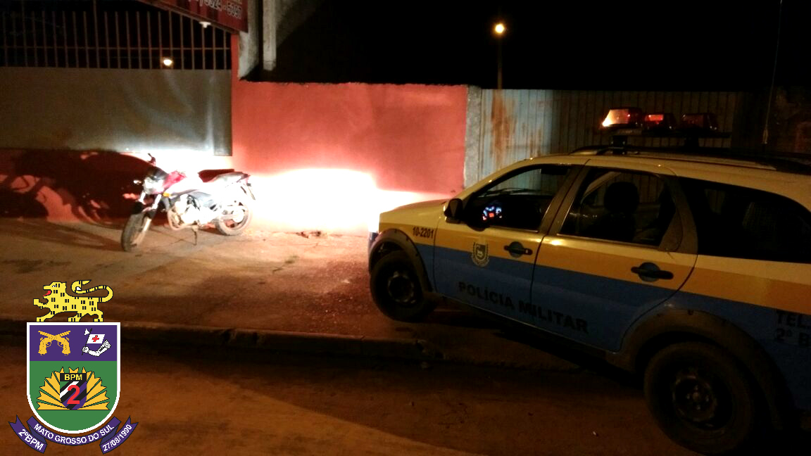 Campo Grande (MS) – 30 de janeiro de 2017. Na madrugada de ontem (29), policiais do Batalhão De Choque da PMMS em rondas pelo bairro Jardim Noroeste visualizaram entre o portão de um imóvel uma motocicleta estacionada com a placa identificadora dobrada.