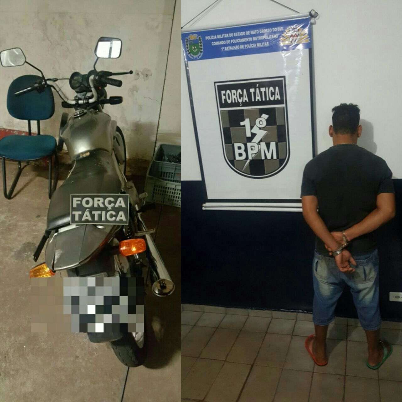 Campo Grande (MS) Nesta terça -feira (17) a equipe da Força Tática do 1ºBPM recuperou uma motocicleta roubada e efetua prisão de autor de receptação, o qual também é suspeito de realizar vários delitos utilizando a referida motocicleta.