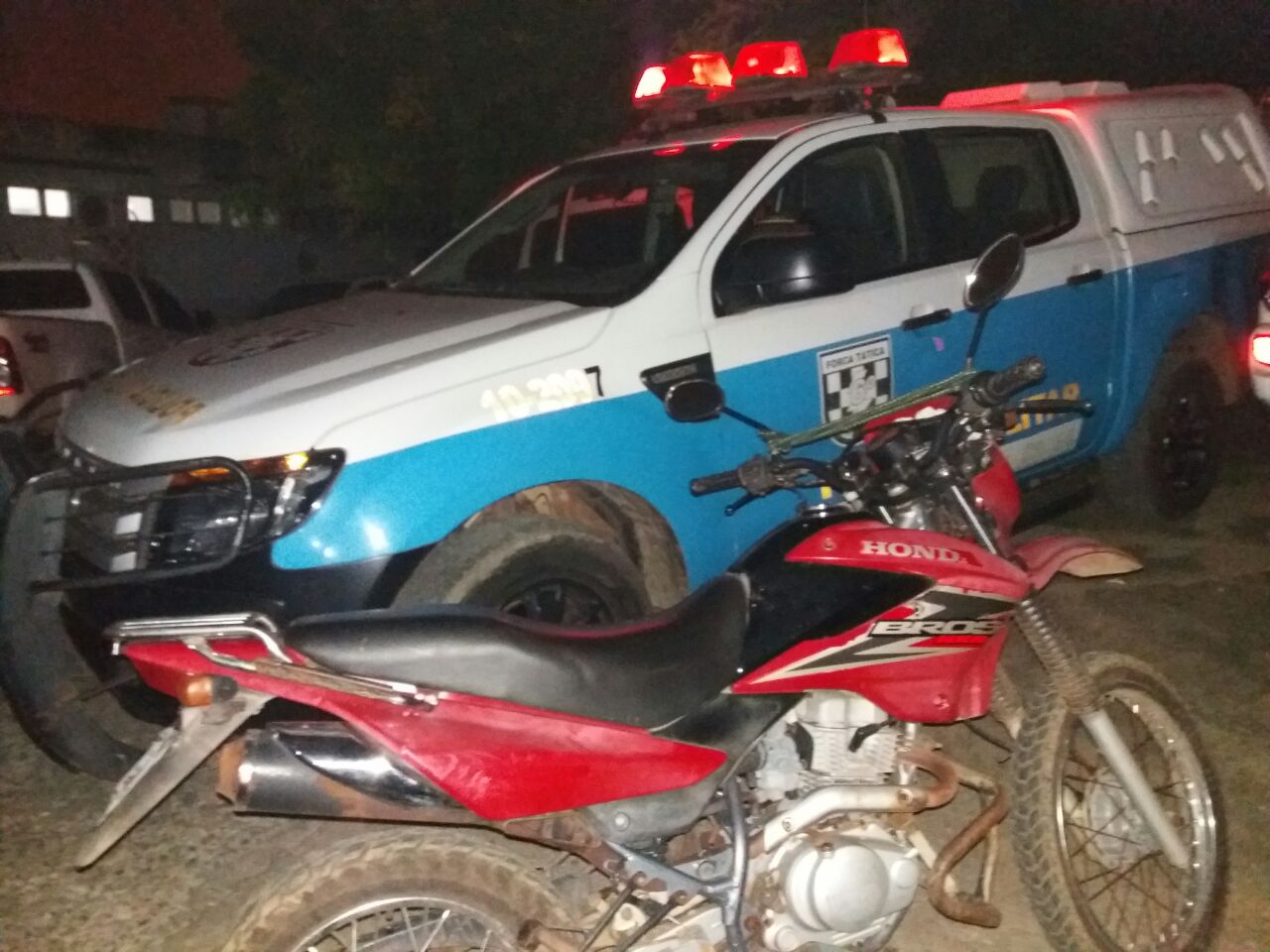 Campo Grande (MS) Nesta terça- feira (10) a equipe da 3ª Cia/Sidrolândia foi acionada via 190, para averiguar uma moto que foi abandoanda de um ônibus de passageiros. O fato ocorreu na Rua Santa Catarina próximo à um matagal no final da rua, dois