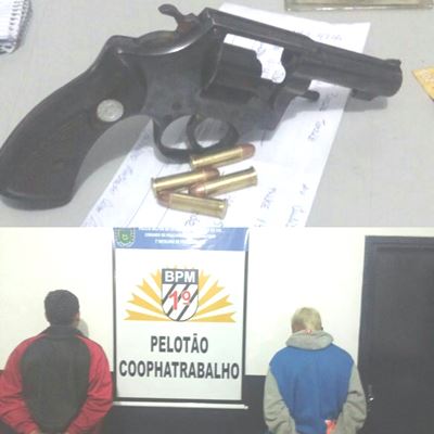 Campo Grande (MS) Base Comunitária Coophatrabalho/1°BPM efetua a prisão de dois homens transitando com arma de fogo na av. Julio de Castilho. Quando em rondas preventivas e ostensivas pelo endereço nas imediações da Julio de Castilho a equipe PM se
