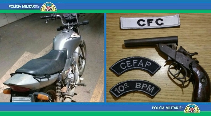 Campo Grande (MS) – Na noite desta quarta-feira (21), dois adolescentes, ambos de 16 anos, foram apreendidos na área do 10º Batalhão de Polícia Militar, portando uma arma de fogo, tipo garrucha, e trafegando em uma motocicleta Honda/CG Titan, de
