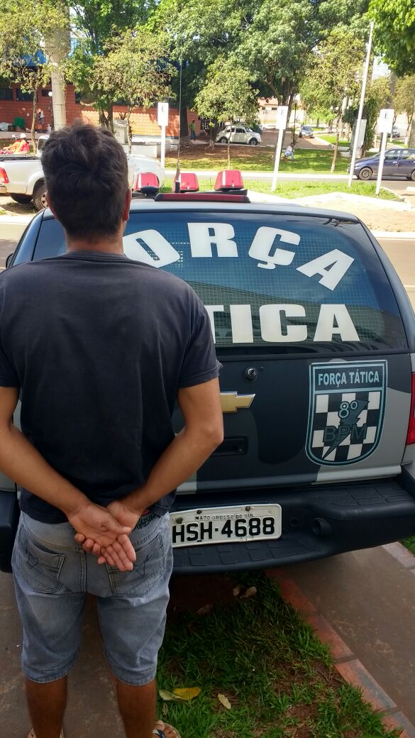 Nova Andradina (MS) – No início da noite de hoje (14), por volta das 19h50min, uma equipe da Polícia Militar por meio da força tática, realizava ronda de patrulhamento de rotina pelo Bairro Argemiro Ortega, quando avistaram um rapaz de 20 anos de idade