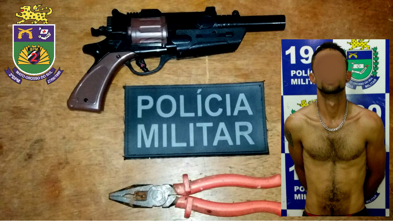 Três Lagoas (MS) – Na noite de ontem (08/12), por volta das 21h50 policiais militares da Radiopatrulha prenderam um individuo com um simulacro de arma de fogo em bar. Durante policiamento ostensivo preventivo pela Avenida Clodoaldo Garcia em local