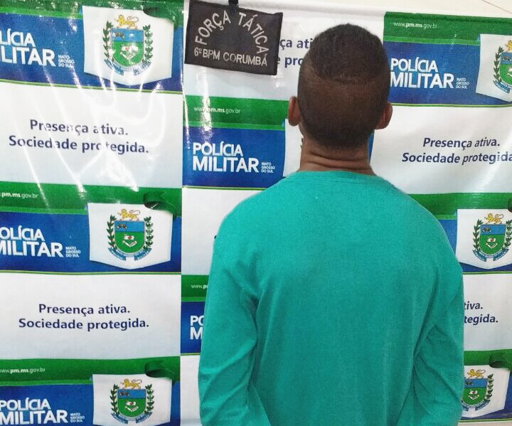 Corumbá (MS) – Nesta quinta-feira (01/12), a Força Tática da Polícia Militar prendeu o homem de 24 anos foragido da justiça. A prisão ocorreu no bairro Maria Leite por volta das 16h50min, a ação foi possível graças a ações de abordagens e