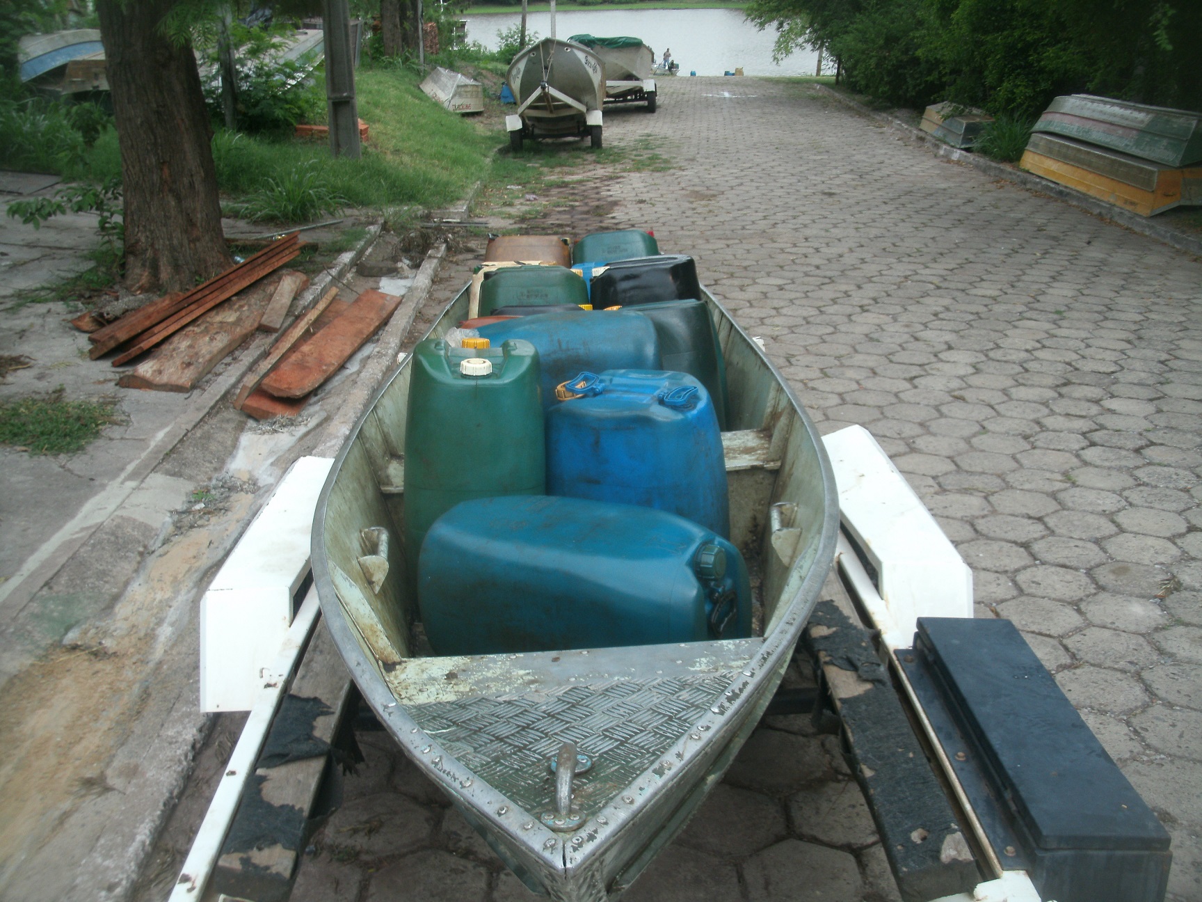 Campo Grande (MS) – Uma equipe da Polícia Militar Ambiental de Corumbá flagrou, ontem (28) à noite, um barco de alumínio atracado na baía do Tamengo, próximo ao Porto Geral do município, com 16 galões de combustível, totalizando 800 litros, produto