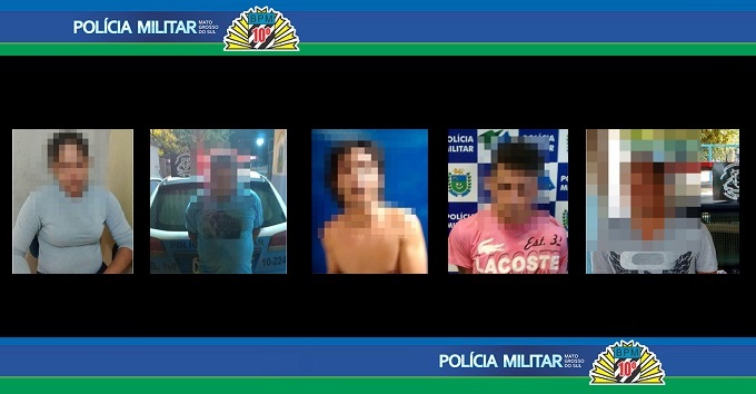 Campo Grande (MS) – Em 24 horas de trabalhos as equipes policiais do 10º Batalhão de Polícia Militar – sob a coordenação do oficial de dia Tenente Delazari – prenderam cinco pessoas (de 25, 26, 28, 29 e 50 anos) que se encontravam com