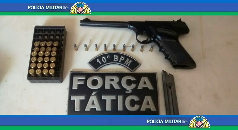 Campo Grande (MS) – Por volta das 14h20min desta quarta-feira (9), uma equipe da Força Tática do 10º Batalhão de Polícia Militar – sob a coordenação do oficial de dia Tenente Delazari – apreendeu uma pistola da marca Tala SS, modelo