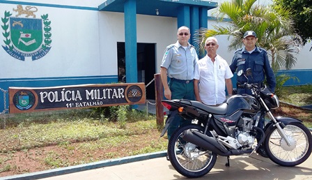 Jardim (MS) – Na manhã desta quinta-feira (03) o Comando do 11º Batalhão de Polícia Militar recebeu, do empresário Sérgio Luiz Pereira, uma motocicleta Honda para premiação por recompensa ao Policial Militar Destaque do Ano de 2016. O Major QOPM