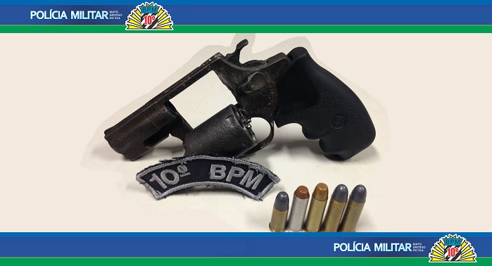 Campo Grande (MS) – Na madrugada desta quinta-feira (3), uma equipe do 10º Batalhão de Polícia Militar, sob a coordenação do oficial de dia, Tenente Delazari, apreendeu uma arma de fogo, tipo revólver, da marca Rossi, de calibre 38, carregado