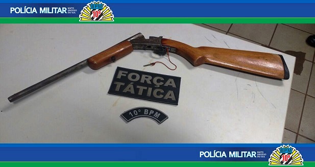 Campo Grande (MS) – Por volta das 19h desta segunda-feira (31), uma guarnição da Força Tática do 10º Batalhão de Polícia Militar, sob a coordenação da oficial de dia Capitã Cleide Maria, apreendeu uma arma de fogo, tipo espingarda, de