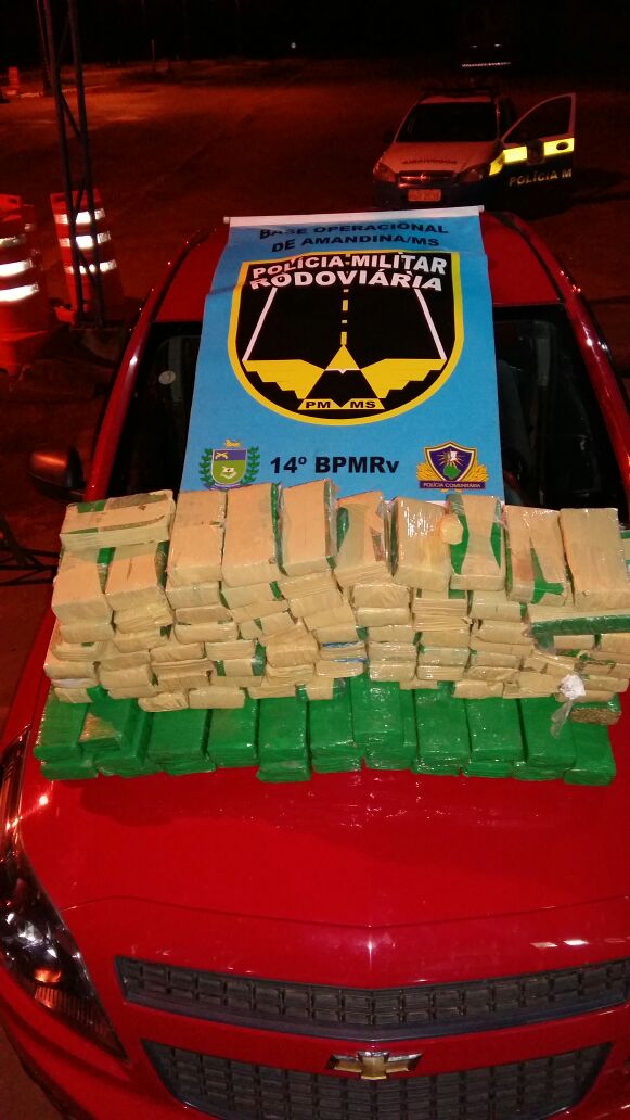 Campo Grande (MS) – A Polícia Militar Rodoviária, através da Base operacional de Amandina, apreendeu setenta e um quilos de maconha na madrugada do dia 26 de outubro. Os dois ocupantes do veículo, um homem de 37 anos e outro de 31 anos foram presos pelo