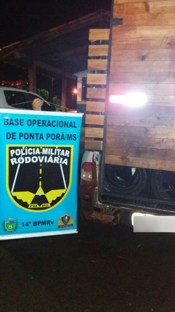Campo Grande (MS) – A Polícia Militar Rodoviária, através da Base Operacional de Ponta Porã, apreendeu na noite do dia 26 de outubro, 60 (sessenta) pneus de origem estrangeira sendo transportados em um veículo na Rodovia MS-164. Por volta das 21:00, os
