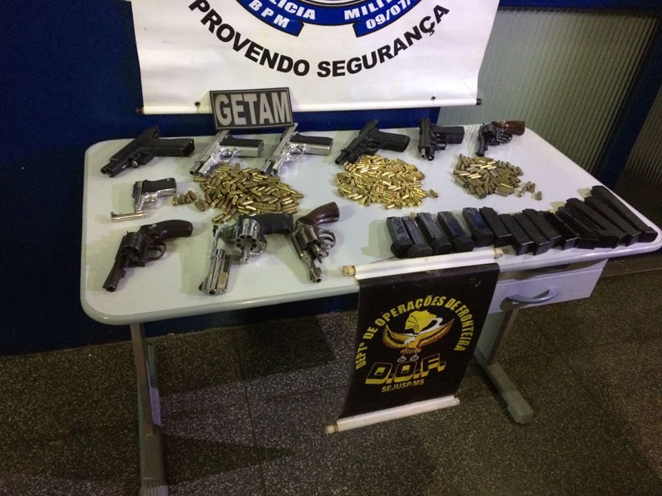 Naviraí (MS) – Na noite de ontem (21), por volta das 22h45min, policiais militares lotados no 12º Batalhão de Polícia Militar de Naviraí em ação conjunta com o DOF (Departamento de Operações de Fronteira), realizaram uma grande apreensão de armas