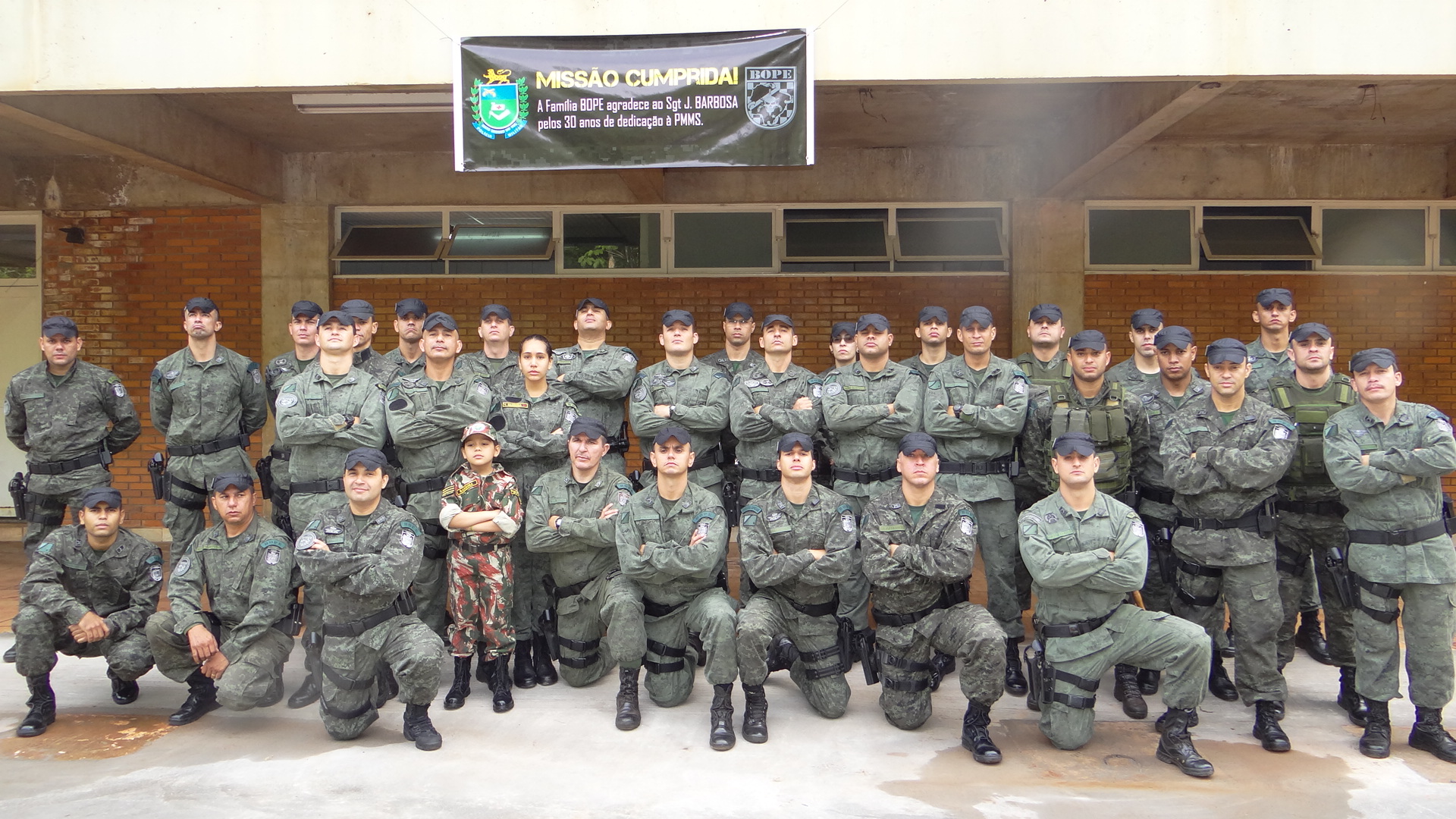 Campo Grande (MS) –Na manhã de hoje (21) o efetivo do Batalhão de Operações Policiais Especiais – BOPE, recepcionou com uma salva de fogos o 3° Sargento JOÂO BARBOSA DA SILVA, que retornava de uma operação policial na região de fronteira, já que