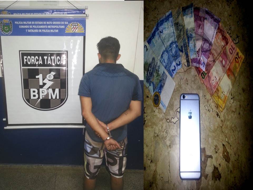 Campo Grande (MS) Neste domingo (16) a equipe da Força Tática/1°BPM, prendeu um homem que roubou duas pessoas dentro de um estabelecimento comercial. Os policiais militares receberam a informação que uma Senhora a foi vítima de roubo, no local