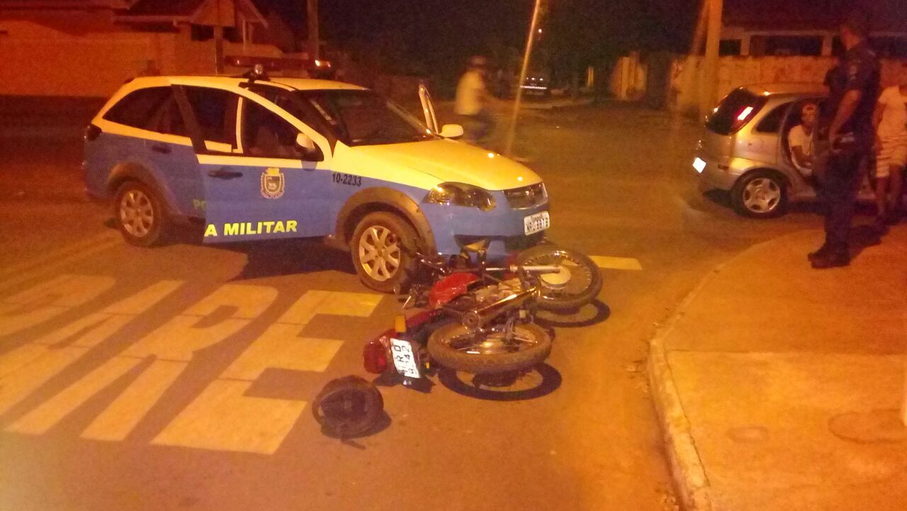 Corumbá (MS) – Na inicio da noite deste domingo (16/10/16), por volta das 19h00min; A Equipe Policial foi acionada pelo CIOPS para atender acidente de trânsito na rua Porto Carreiro com Firmo de Matos, na rotatória, uma motocicleta Honda Titan e
