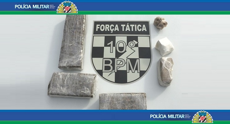 Campo Grande (MS) – Na tarde desta quinta-feira (13), uma equipe da Força Tática do 10º Batalhão de Polícia Militar, sob a coordenação do oficial de dia, Tenente Arédio, apreendeu 2 kg de maconha e 0,3 kg de cocaína, que estavam em posse de