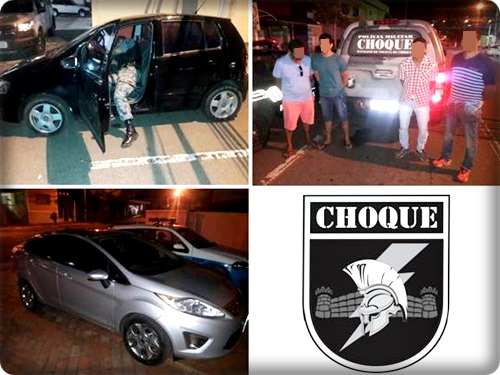 Campo Grande (MS) – 13 outubro de 2016. Policiais do Batalhão de Choque prenderam quatro indivíduos, com idades entre 23 e 45 anos, com veículos clonados. Os militares do Choque durante patrulhamento por volta das 20h30min, pelo bairro Chácara