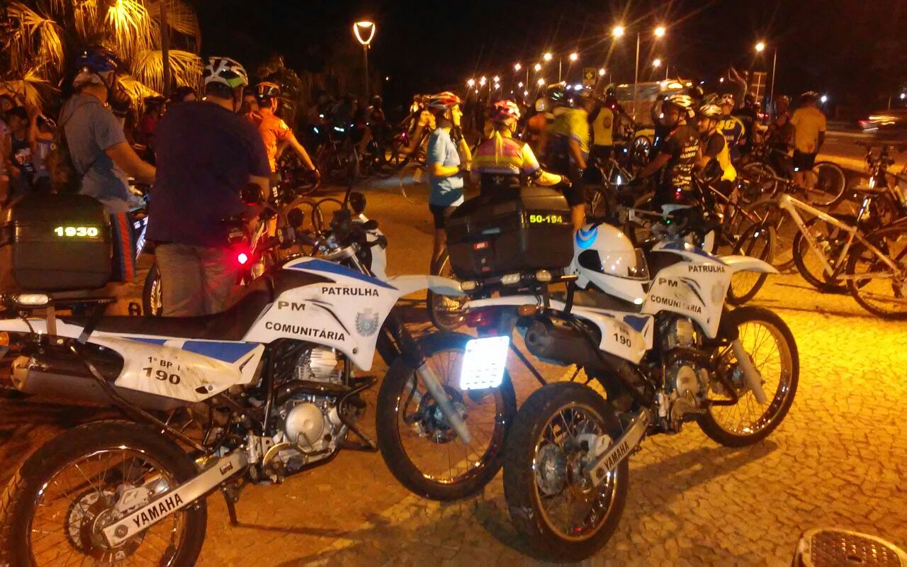Campo Grande (MS) Na noite desta quinta- feira a equipe de motociclistas do 1º Batalhão de Policia Militar realizou a segurança de aproximadamente 120 ciclistas que percorreram o Mirante até o Polo Industrial – Indubrasil que abrange a