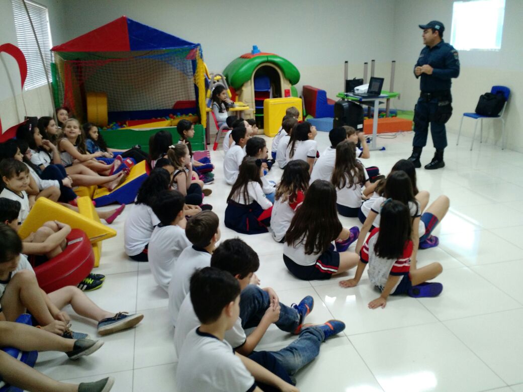 Nova Andradina (MS) – Na tarde de hoje (21), das 13 às 16hs, a Sd PM Lucilene Barros e o Sd PM Roberley, que compõe uma equipe de trânsito do 8º BPM, realizaram uma palestra na Escola Anglo para aproximadamente 150 crianças. A palestra faz parte