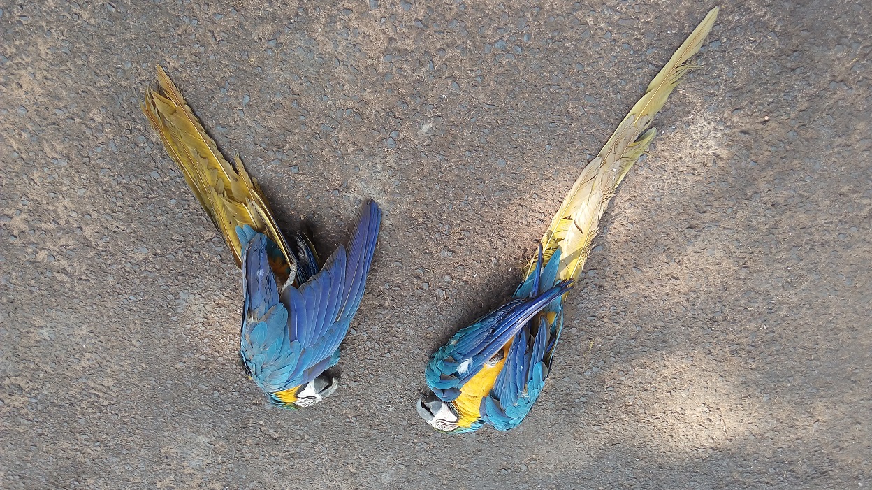 Campo Grande (MS) – Policiais Militares Ambientais de Campo Grande receberam hoje (15) às 7h00, duas araras da espécie Ara ararauna (arara-canindé). Um morador de Campo Grande, que viajava pela BR 163 encontrou os animais mortos às margens da