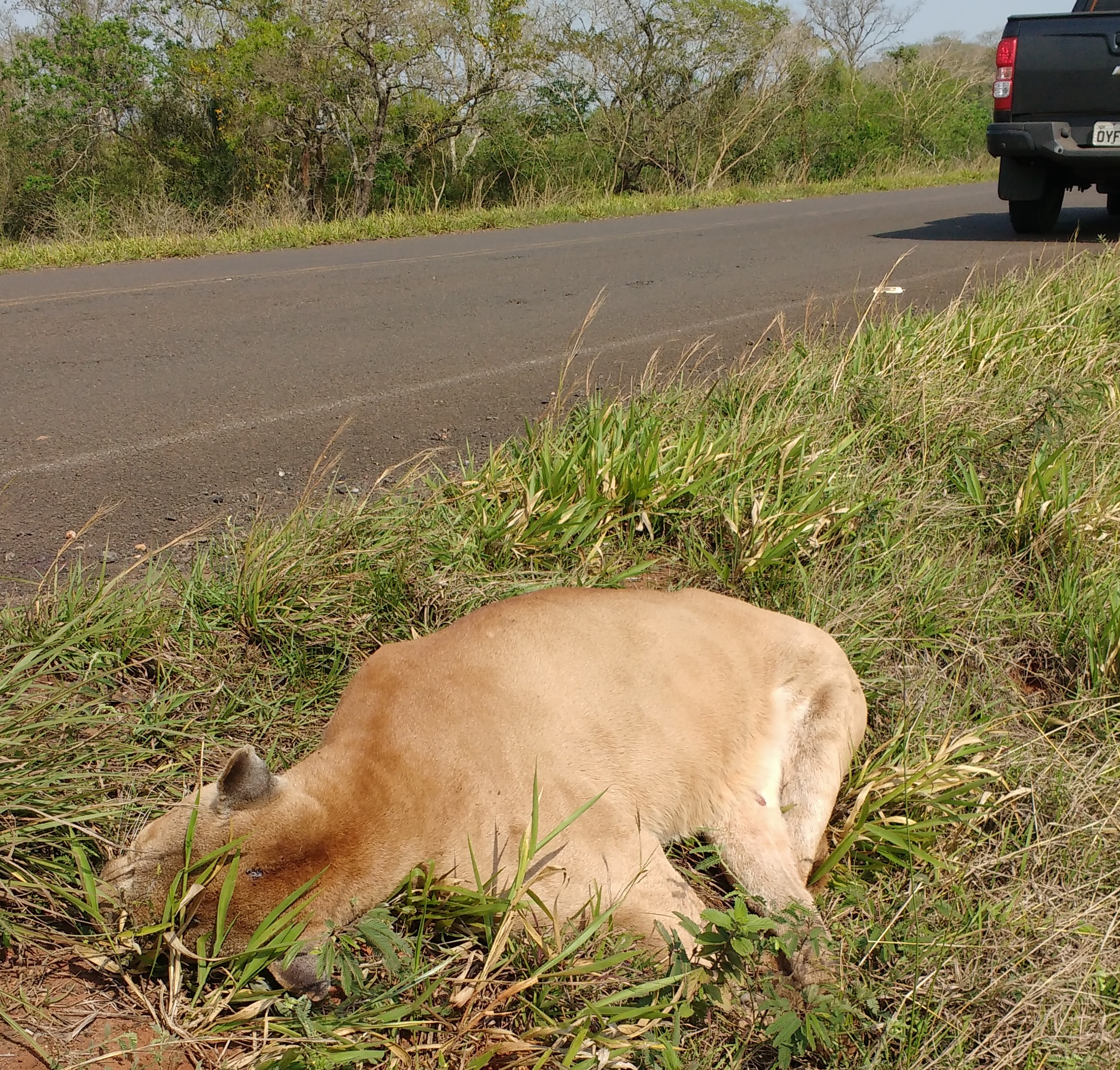 Campo Grande (MS) – Policiais Militares Ambientais de Bela Vista receberam informação hoje (14) pela manhã, de que à margem da Rodovia MS 384, nas proximidades da ponte sobre o Rio Estrelinha, haveria uma onça-parda, que teria sido atropelada e