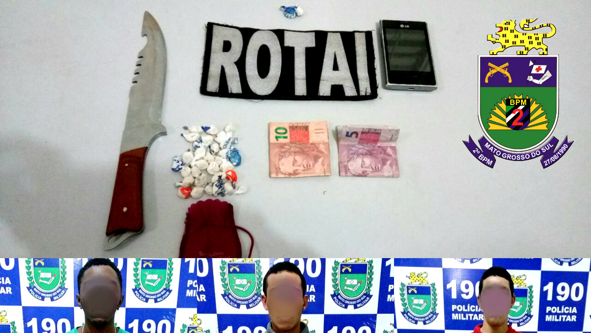 Três Lagoas (MS) – Na tarde de quinta-feira (08/09), por volta das 17h00min policiais militares do 2º Batalhão apreenderam um adolescente e dois homens por tráfico de drogas. Uma guarnição da ROTAI (Rondas Táticas do Interior), durante o