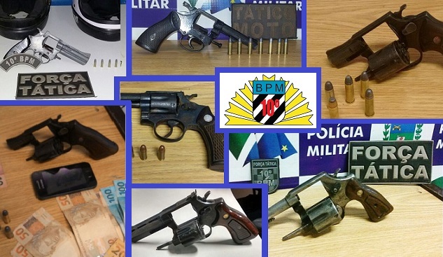 Campo Grande (MS) – Na última quinzena do mês de agosto, as guarnições da Força Tática do 10º Batalhão de Polícia Militar apreenderam sete armas de fogo de diversos calibres, prenderam 11 indivíduos com mandado de prisão em aberto,