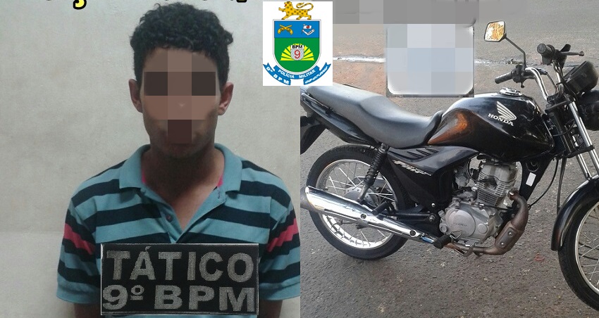 Campo Grande (MS)-Policiais Militares da Força Tática do 9°BPM, prenderam neste sábado (27), um homem de dezoito anos, no Bairro Danúbio Azul. Por volta das 16h44, a equipe de serviço, abordou uma moto FAN de cor preta sendo que ao ser checada, foi